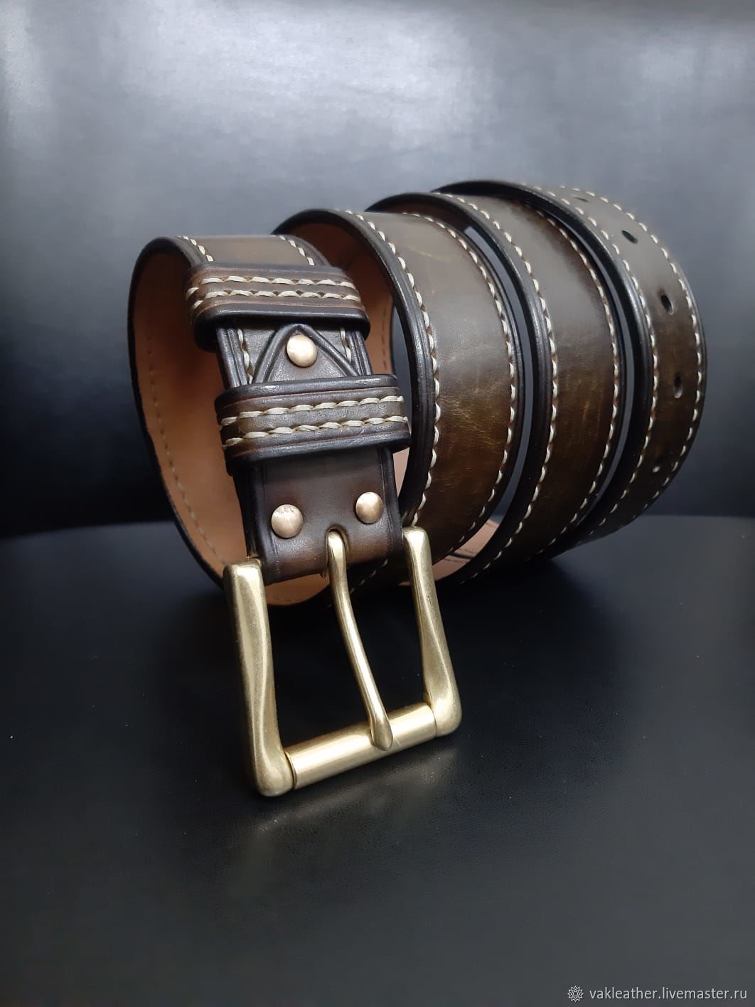 Кожаный ремень с латунной пряжкой в интернет-магазине Ярмарка Мастеров