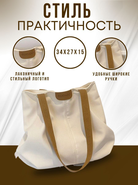 Сумка-шоппер женская на плечо на молнии без принта тканевая на широком