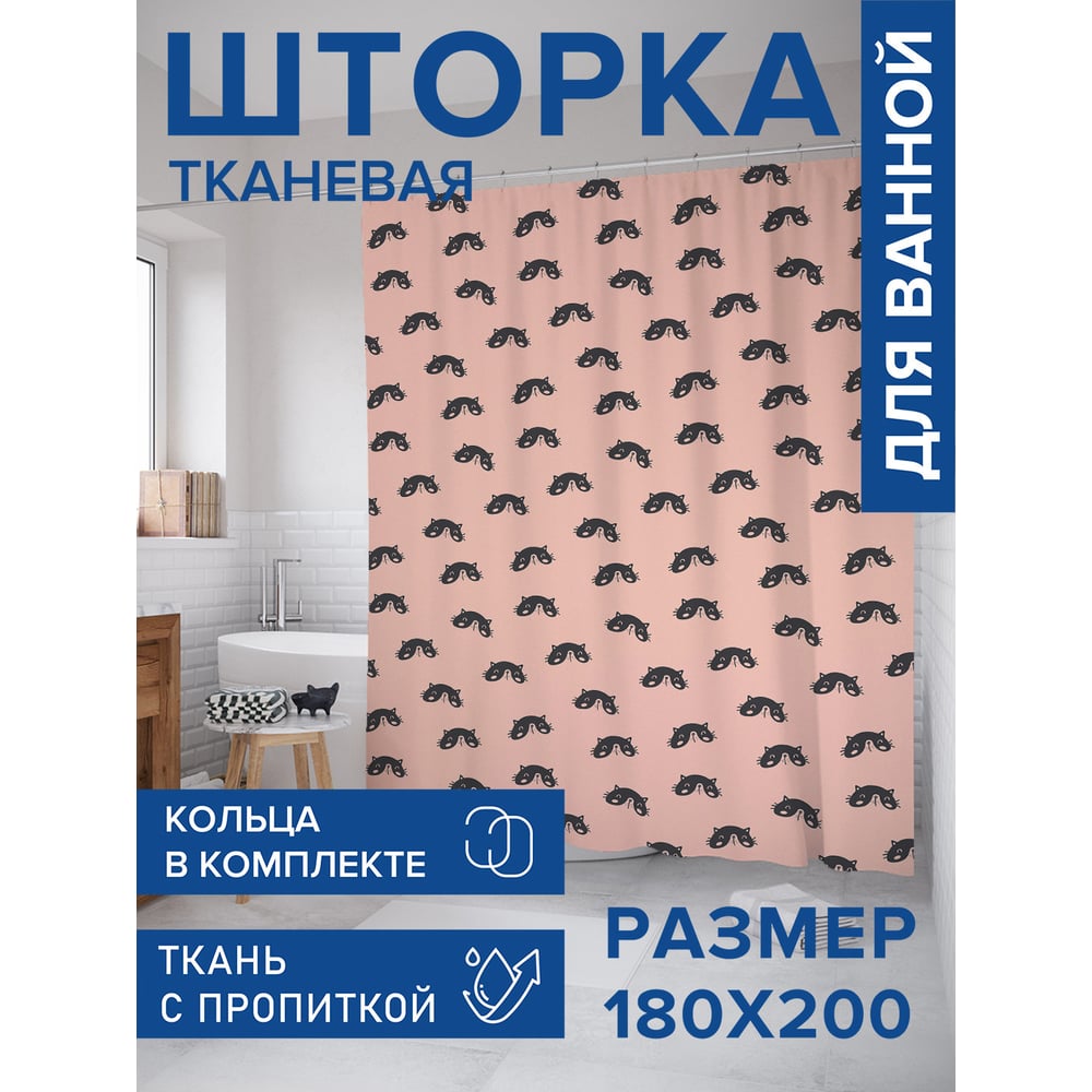 Штора для ванной, занавеска в ванную комнату тканевая "Моська", 180x200