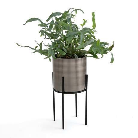 Кашпо на подставке из металла под оружейную сталь Inaya серого цвета