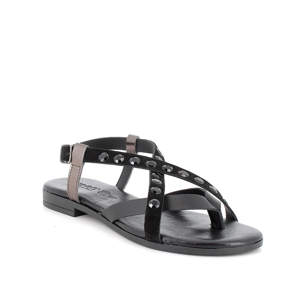 ЖЕНСКИЕ КОЖАНЫЕ САНДАЛИИ ЧЕРЕЗ ПАЛЕЦ ЧЕРНЫЙ