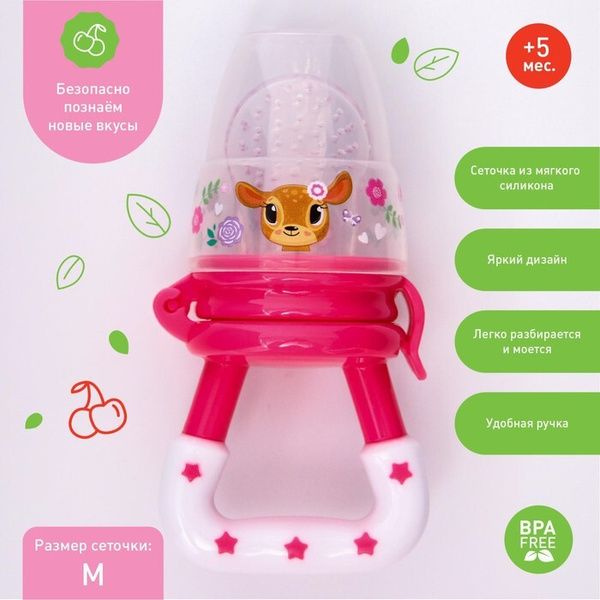 Ниблер для прикорма с силиконовой сеточкой "Мишка розовый"