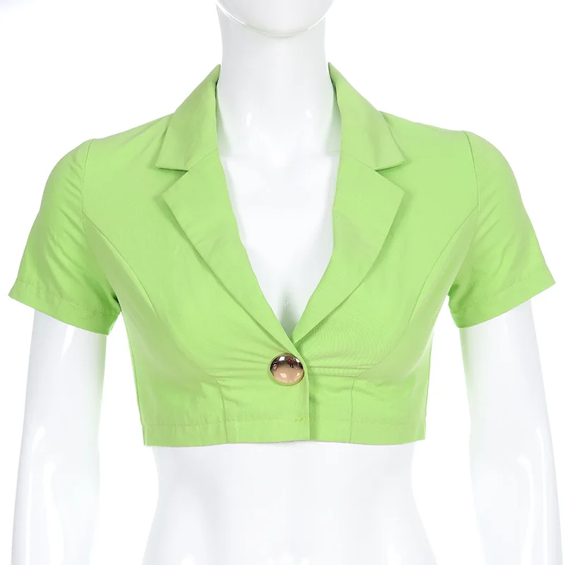 Короткий рукав неоновый зеленый Блейзер Женский глубокий v-образный