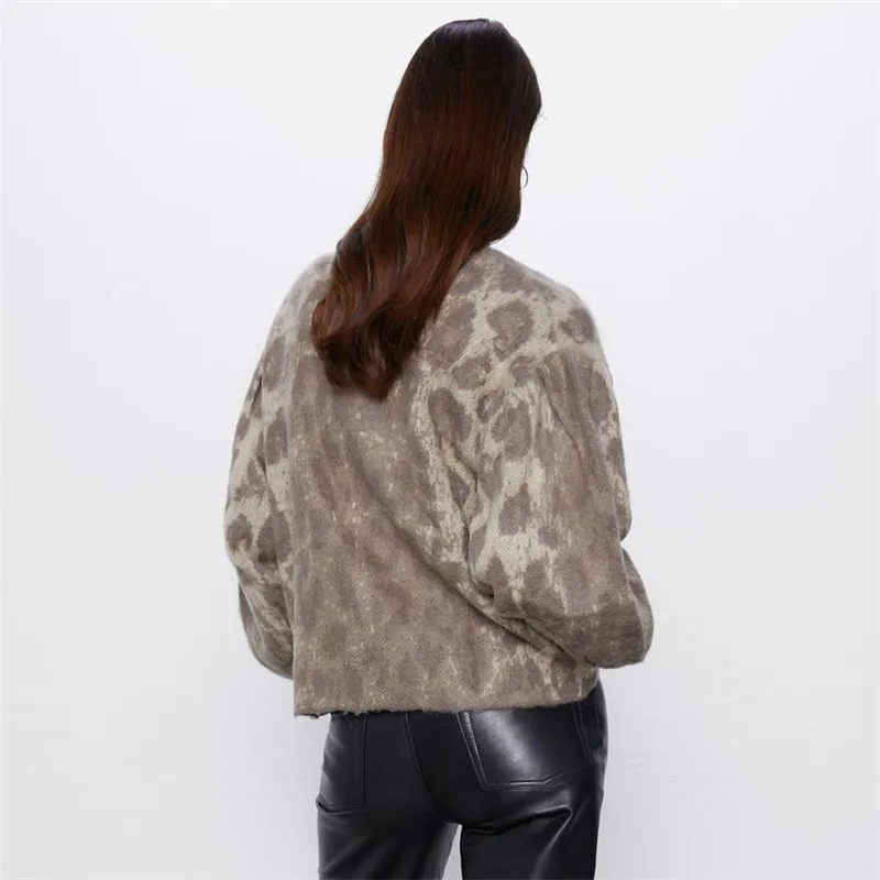 ZA женский вязаный кардиган, свитер с леопардовым принтом и v-образным