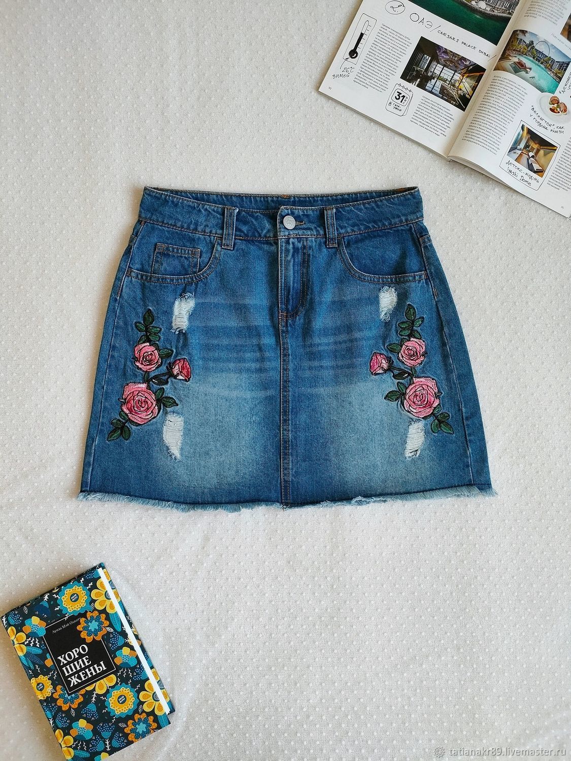 Винтаж: 42-44 Юбка мини джинсовая Young Fashion синяя Розы в интернет