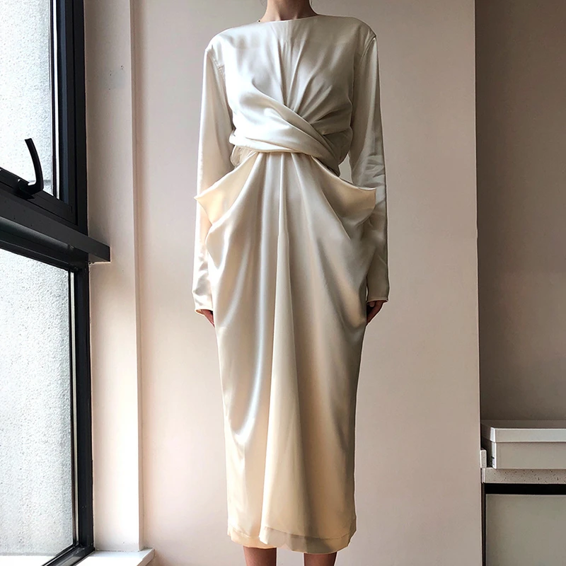 Платье из плотного полуматового сатина, скроенное по косой зеленого