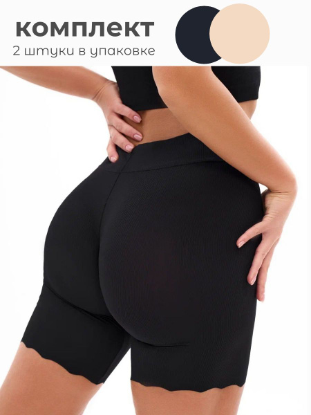 Комплект трусов Женский шорты, панталоны бежевый, черный, размер 56, 58